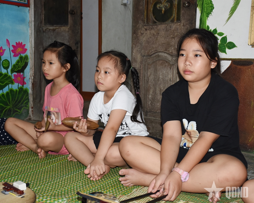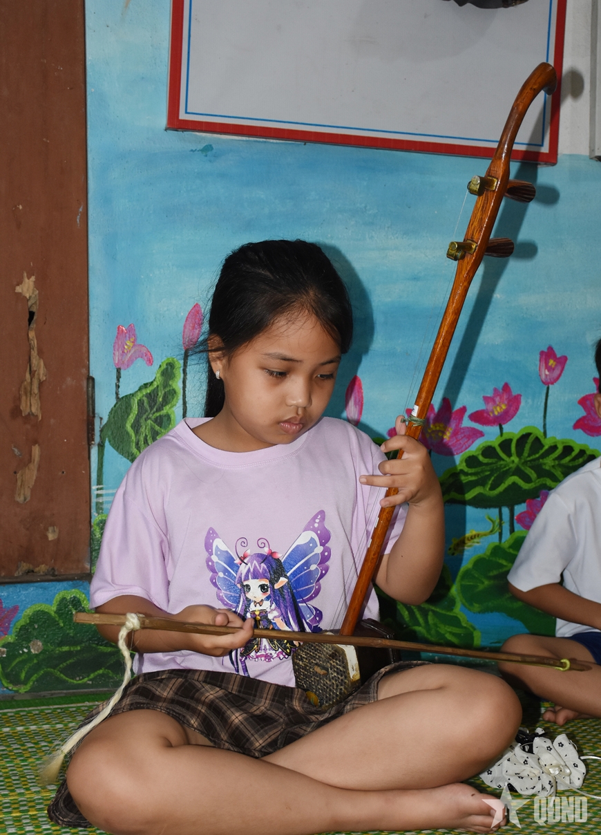 Tại câu lạc bộ, các em được học hát, học đàn, trống, sênh. |