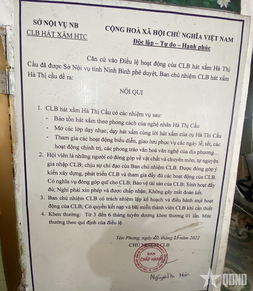 “Tại câu lạc bộ, các em được học hát xẩm theo phong cách nghệ nhân Hà Thị Cầu, được học nhạc (nhị, trống, sênh), học hát. Những ngày thường, những người yêu xẩm từ già đến trẻ thường tìm đến đây để được thể hiện tài năng, sống trong những làn điệu xẩm độc đáo của dân tộc”, bà Nguyễn Thị Mận cho hay.