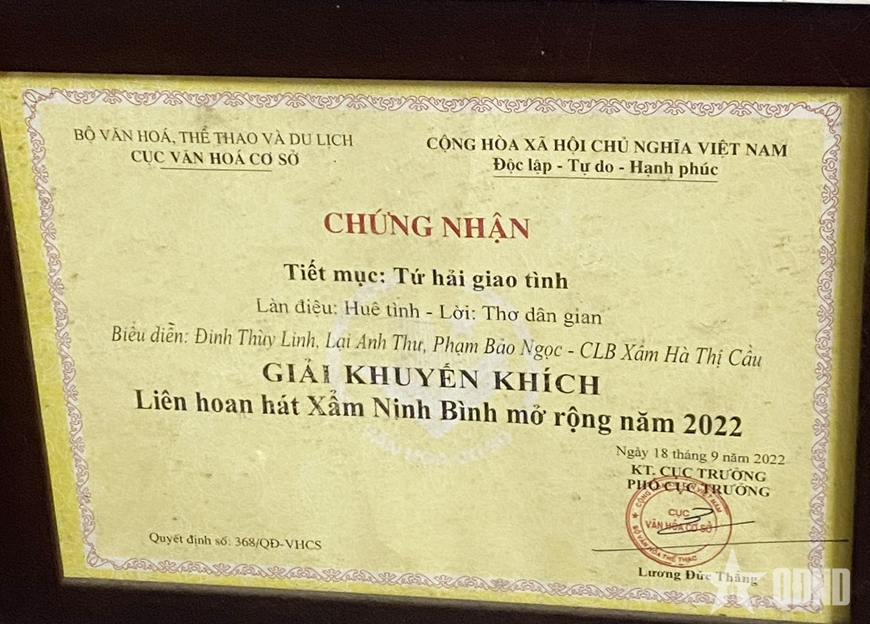 Không chỉ bảo tồn và truyền dạy hát xẩm, Câu lạc bộ hát xẩm Hà Thị Cầu còn là nơi phát hiện, ươm mầm và bồi dưỡng nhiều tài năng âm nhạc nhí. Nhiều thành viên trong câu lạc bộ đã tham gia biểu diễn tại các cuộc liên hoan âm nhạc toàn tỉnh, toàn quốc. Một trong số đó là Đinh Thùy Linh, 15 tuổi. Không chỉ có giọng hát tốt, Đinh Thùy Linh có thể chơi được hầu hết các loại nhạc cụ dân tộc như nhị, trống, phách, đàn lục, đàn bầu, đàn tranh. Trước đó, tại Hội thi “Tìm kiếm tài năng âm nhạc tỉnh Ninh Bình năm 2024”, Đinh Thùy Linh đã đoạt giải C tiết mục tấu nhị “Ngãi mẹ sinh thành”.