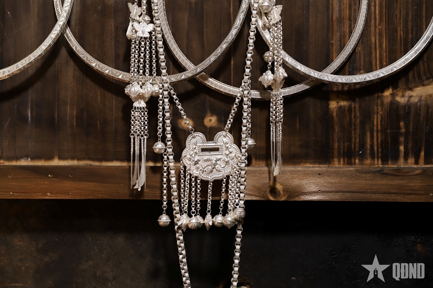 | Chạm trổ hoa văn là công đoạn khó nhất, nơi "người thợ" trở thành "nghệ nhân", gửi gắm những quan niệm về nhân sinh và thiên nhiên của đồng bào mình vào trong thớ bạc. |
