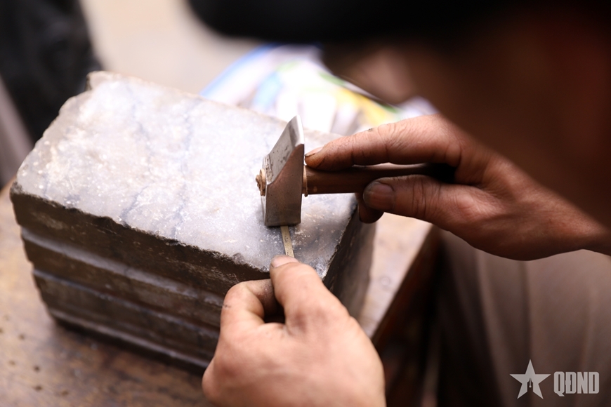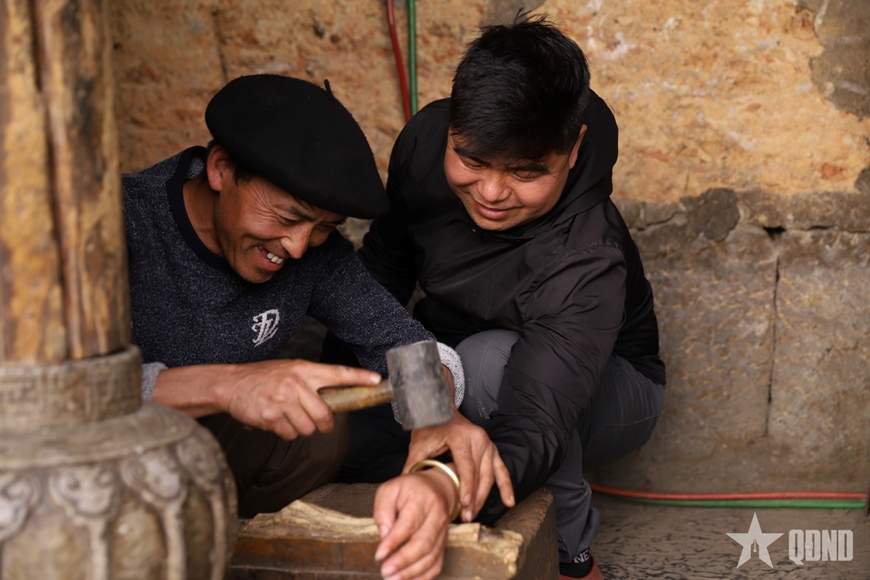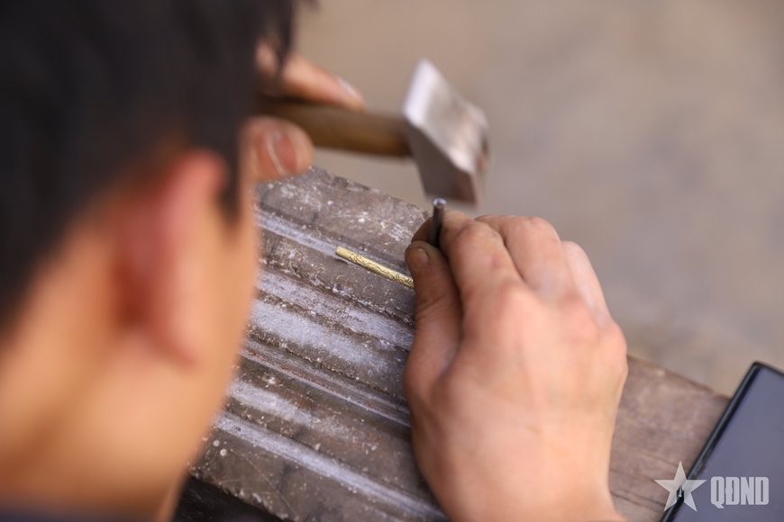 | Những họa tiết hình xoắn ốc, vân lá gai dần hiện lên dưới mũi đục tinh xảo. |