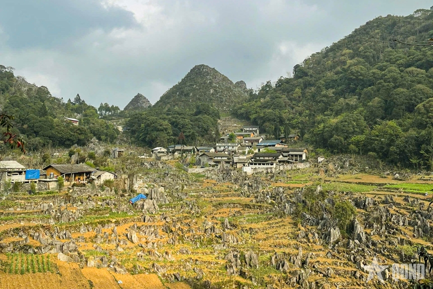 | Lao Xa nằm nép mình bên sườn núi đá tai mèo. |