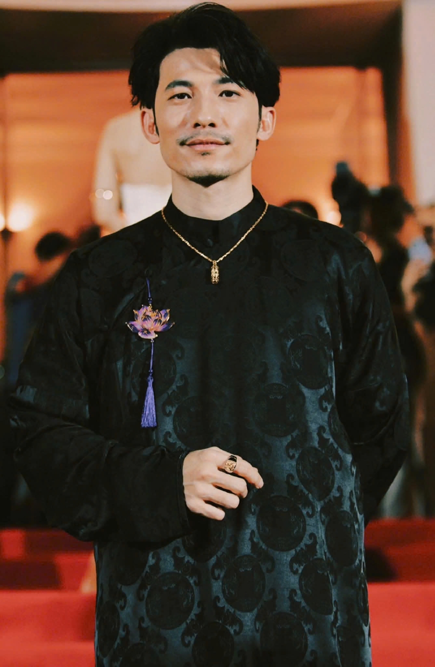 Diễn viên Liên Bỉnh Phát sử dụng treo áo Liên hoa khi tham dự Giải Mai Vàng 2025. Ảnh do nhân vật cung cấp