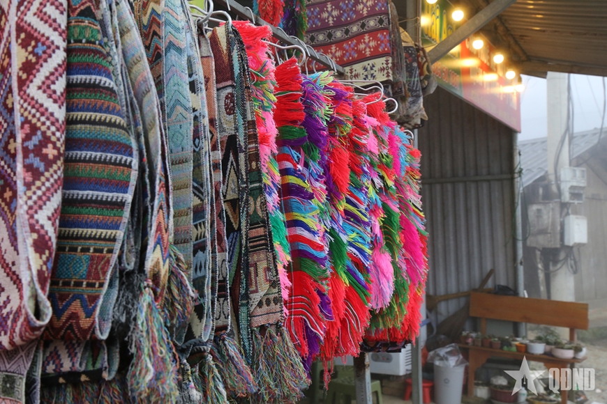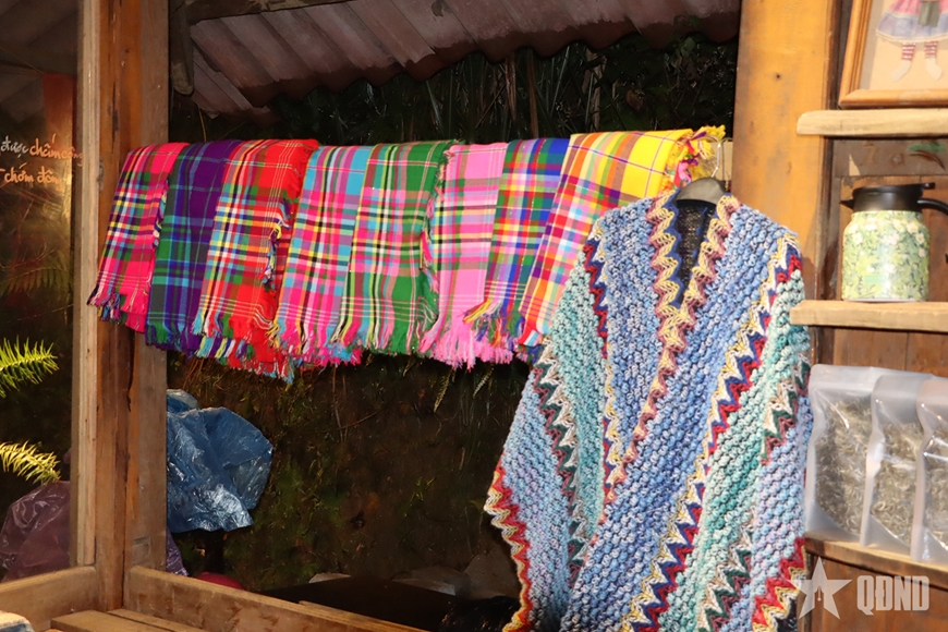 Các quán cà phê ở Tà Xùa (Sơn La) bày bán khăn thổ cẩm, giúp du khách dễ dàng mang về một “mảnh Tà Xùa” làm kỷ niệm.