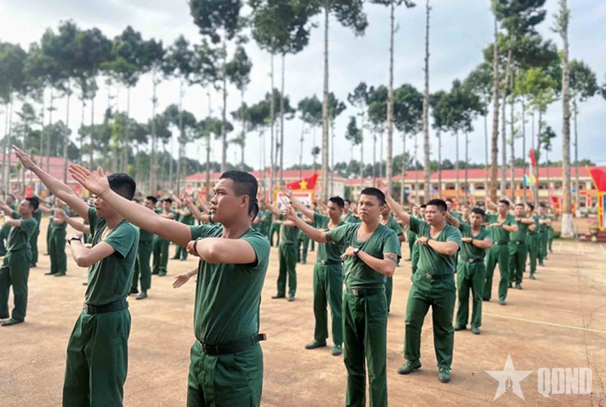 Ngày 14-3, tại Sư đoàn 302 (Quân khu 7), không khí luyện tập vũ điệu sinh hoạt tập thể của chiến sĩ mới diễn ra sôi nổi, hào hứng.