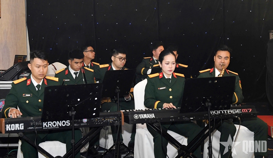 | Ban nhạc Đoàn Văn công Quân khu 7 biểu diễn tại chương trình gặp mặt các đại biểu chức sắc tôn giáo do Quân khu 7 tổ chức. |