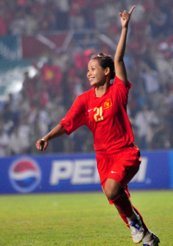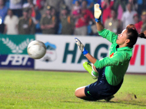 Hiệp phụ thi đấu thứ 2 tiếp tục trôi qua mà không có đội nào mở được tỷ số trận đấu. Sự nỗ lực không biết mệt mỏi của các cô gái Việt Nam cùng các pha tấn công biên quen thuộc đã phần nào tạo được thế cân bằng cho trận đấu trước sức ép khá lớn mà các cô gái Thái tạo ra trước khung thành thủ môn Kiều Trinh. Bất phần thắng bại trong 120 phút thi đấu cả 2 đội bước vào loạt đá luân lưu 11 mét để phân định thắng thua. Lần lượt Kim Hồng, Văn Thị Thanh và Kim Tiến đều bình tĩnh sút thành công, trong khi hai cầu thủ Thái Lan sút hỏng và thủ môn Kiều Trinh cản phá thành công một quả. Và chỉ bằng ba loạt sút, đội tuyển Việt Nam đã lấy lại ngôi “hậu” từ tay người Thái. Giành chiến thắng 3-0 trên chấm 11m, đội tuyển nữ Việt Nam đã giành huy chương vàng môn bóng đá nữ SEA Games 25 một cách thuyết phục. Như vậy, sau kỳ SEA Games 2007 bị Thái Lan tước ngôi "hậu", tuyển nữ Việt Nam đã trở lại với ngôi vị số 1 khu vực Đông Nam Á khi hạ gục chính đối thủ này. Một thành tích tuyệt vời của các cô gái Việt Nam. Giờ đây, người hâm mộ Việt đang rất kỳ vọng, niềm vui của bóng đá nước nhà sẽ được nhân đôi trong ngày hôm nay nếu thầy trò HLV Calisto hạ gục U23 Ma-lai-xi-a trong trận chung kết môn bóng đá nam.