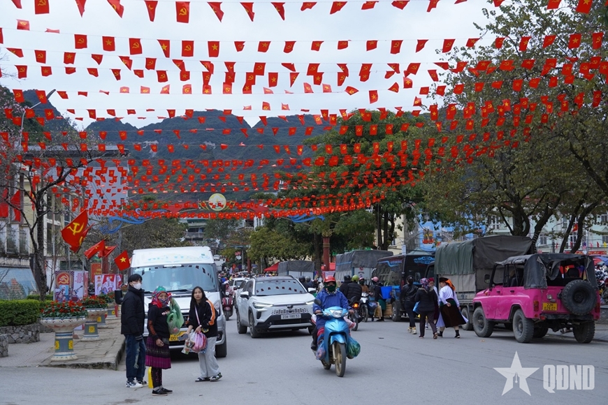 | Cờ Đảng, cờ Tổ quốc giăng kín các tuyến phố. |