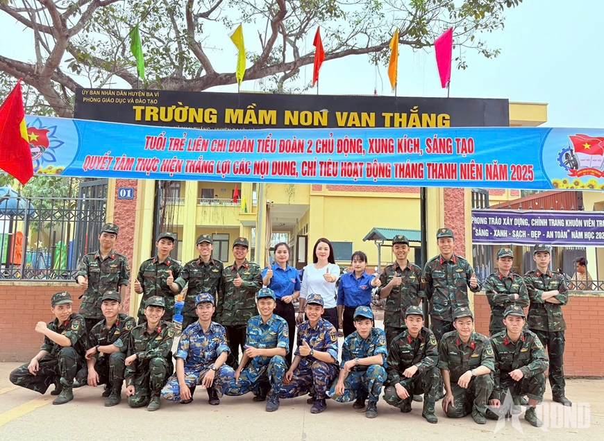 Hưởng ứng Tháng Thanh niên năm 2025 và chào mừng kỷ niệm 94 năm Ngày thành lập Đoàn Thanh niên Cộng sản Hồ Chí Minh (26-3-1931 / 26-3-2025), qua 6 ngày phối hợp, ngày 21-3, tại Trường Mầm non Vạn Thắng (huyện Ba Vì, Hà Nội), Đoàn Thanh niên nhà trường - Đơn vị kết nghĩa Liên chi đoàn Tiểu đoàn 2 Trường Trung cấp Kỹ thuật Công binh (Binh chủng Công binh) và Đoàn Thanh niên xã Vạn Thắng tổ chức cắm biển hoàn thành công trình “Vườn hoa cho em”.