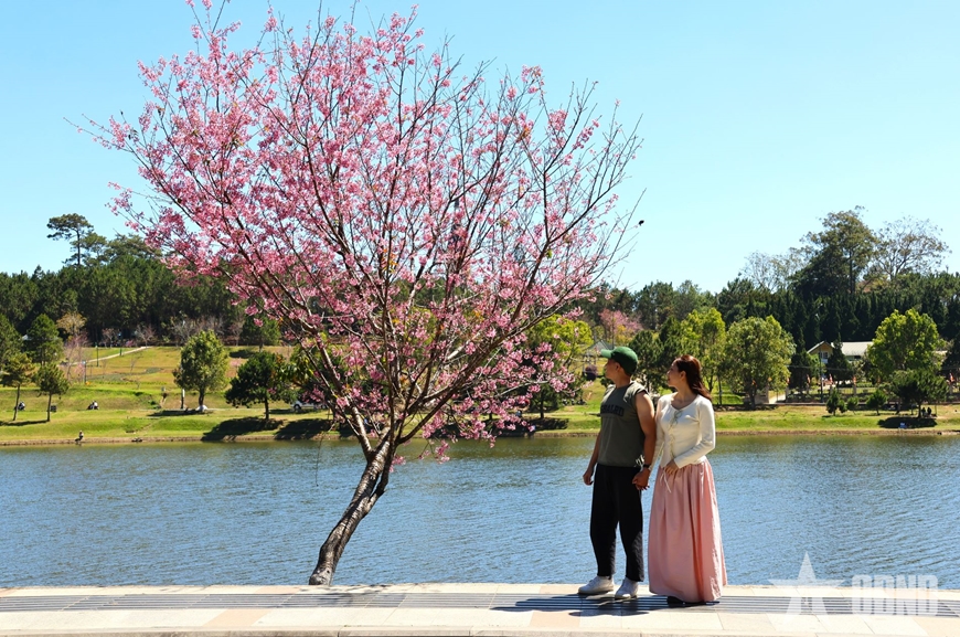 | Du khách đến với Đà Lạt trong mùa hoa mai anh đào. |