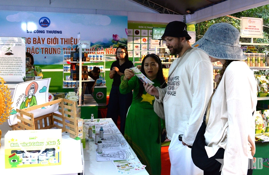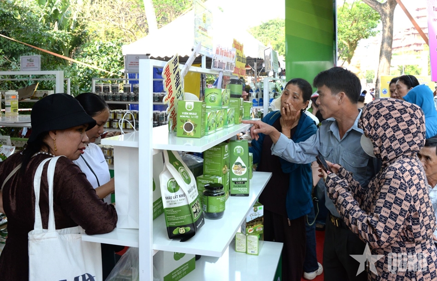 Du khách tham quan, mua sắm tại gian hàng OCOP.