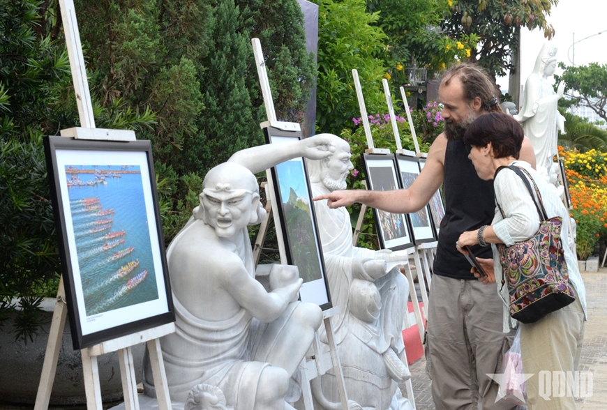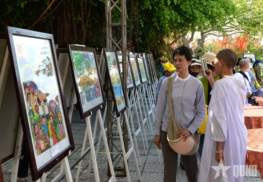 | Người dân tham quan triển lãm tranh ảnh thiếu nhi “Nét đẹp Ngũ Hành Sơn". |