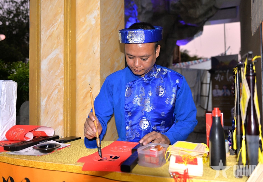 Trình diễn nghệ thuật viết thư pháp.