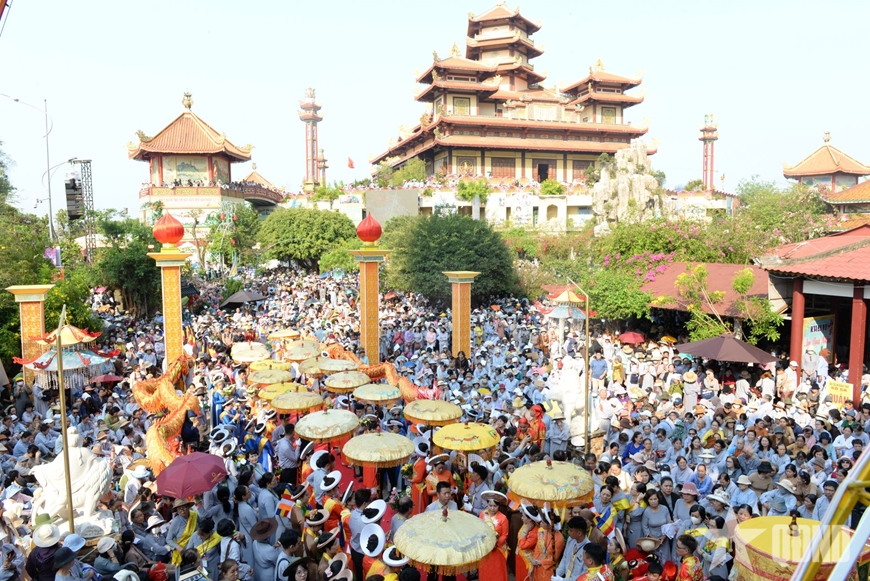 | Hàng vạn chư tôn đức tăng, ni, phật tử, người dân và du khách thập phương tham dự Lễ vía Đức Bồ Tát Quán Thế Âm. |