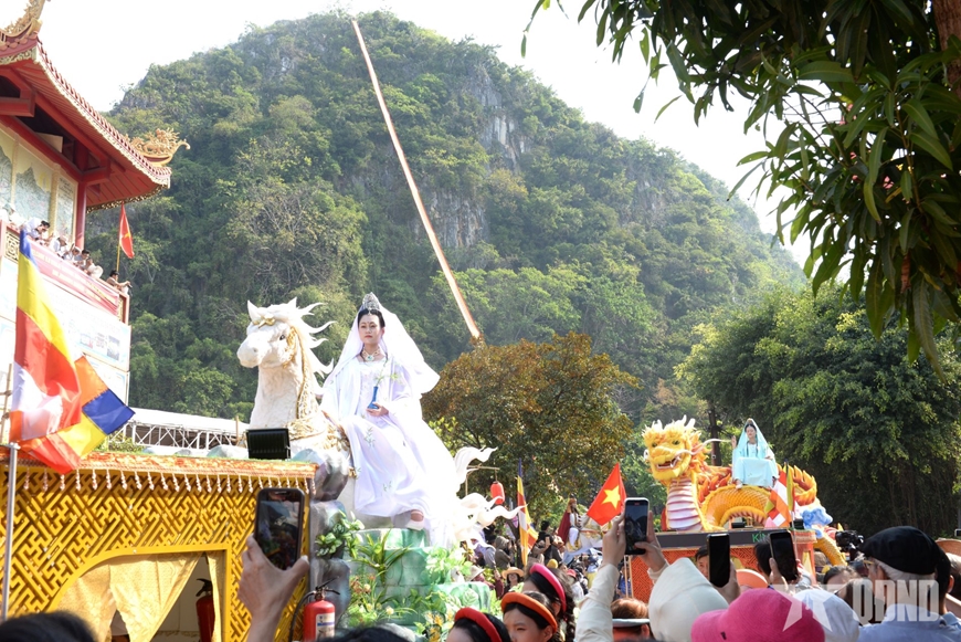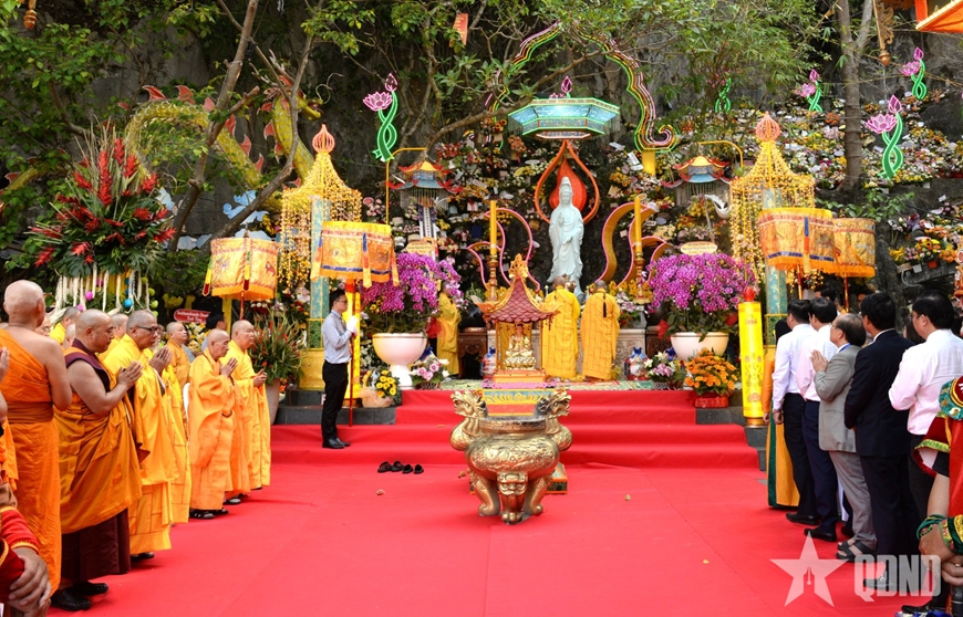 Phát biểu tại buổi lễ, đồng chí Nguyễn Thị Anh Thi, nhấn mạnh: Lễ hội Quán Thế Âm, Ngũ Hành Sơn không chỉ là một sự kiện văn hóa, tín ngưỡng thường niên, mà còn là sự kết tinh của một hành trình văn hóa lâu dài, nơi những lớp trầm tích lịch sử, tín ngưỡng và đời sống dân gian được bồi đắp qua bao thế hệ. Từ một lễ vía mang ý nghĩa tôn vinh Đức Bồ Tát Quán Thế Âm - biểu tượng của lòng từ bi, cứu khổ, cứu nạn, phổ độ chúng sinh, lễ hội đã dần trở thành một không gian văn hóa tâm linh đặc sắc, phản ánh sinh động sự hòa quyện giữa đạo và đời, giữa Phật pháp và tinh thần dân tộc.