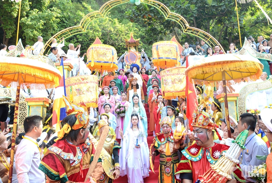 Tại buổi lễ, các đại biểu thực hiện nghi thức dâng hoa lên Đức Bồ tát Quán Thế Âm; các nghi lễ truyền thống cầu nguyện quốc thái dân an, nhân dân an lạc, hạnh phúc. Điểm nhấn của phần lễ là nghi thức rước tôn tượng Đức Bồ tát Quán Thế Âm kết hợp với tái hiện hình tượng Bồ tát Quán Thế Âm.