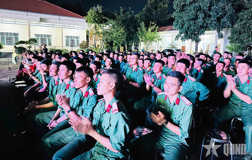 Cán bộ, chiến sĩ hào hứng thưởng thức các tiết mục nghệ thuật.