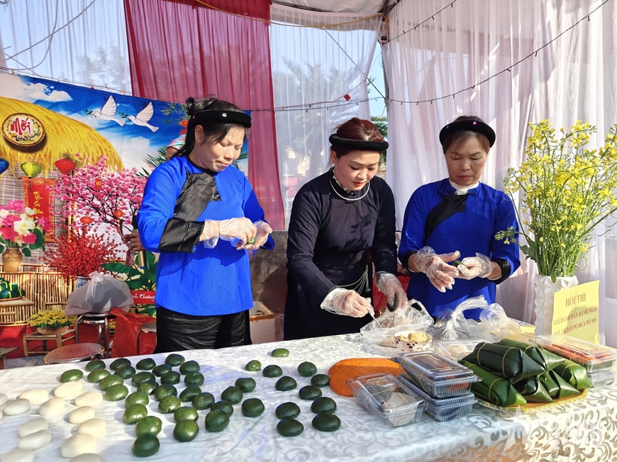 | Hội thi giã bánh giầy, bánh ngải truyền thống nhân lễ hội đền Kỳ Cùng 2026. |