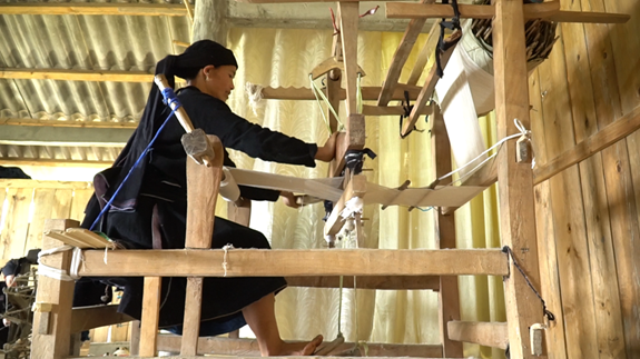 Từ những sợi chỉ mỏng manh, người phụ nữ tiếp tục dệt bên khung cửi để có được một tấm vải thô ưng ý. |