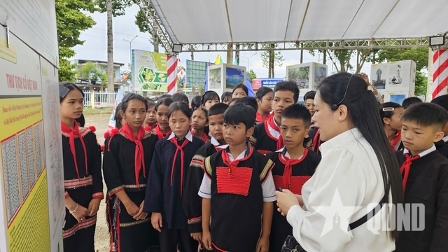 Học sinh dân tộc thiểu số xã Quảng Phú, tỉnh Đắk Lắk tìm hiểu tại triển lãm. |