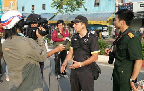 Huấn luyện viên đội Lào (LAO CCN TEAM) trả lời phỏng phấn của phóng viên HTV.