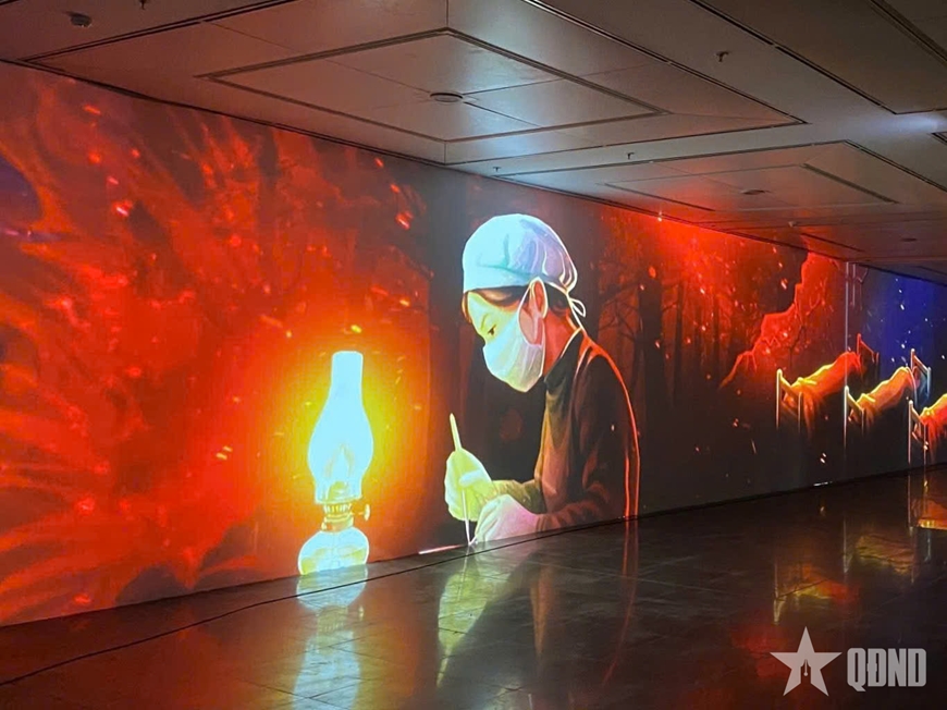 | Không gian trình chiếu 3D tái hiện cuộc đời oanh liệt của nữ bác sĩ, liệt sĩ Đặng Thùy Trâm. Ảnh: Fanpage Bảo tàng Hà Nội |