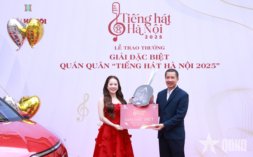 Để ghi nhận tài năng và nỗ lực của Quán quân cuộc thi “Tiếng hát Hà Nội 2025”, Ban tổ chức đã trao giải thưởng Đặc biệt có tổng trị giá 600 triệu đồng, bao gồm tiền mặt và 1 xe ô tô.
