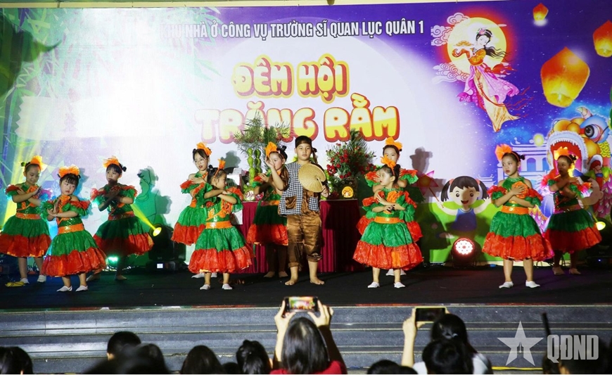 Tiết mục văn nghệ "Chú Cuội chơi trăng" do các cháu thiếu nhi khu nhà công vụ biểu diễn. |