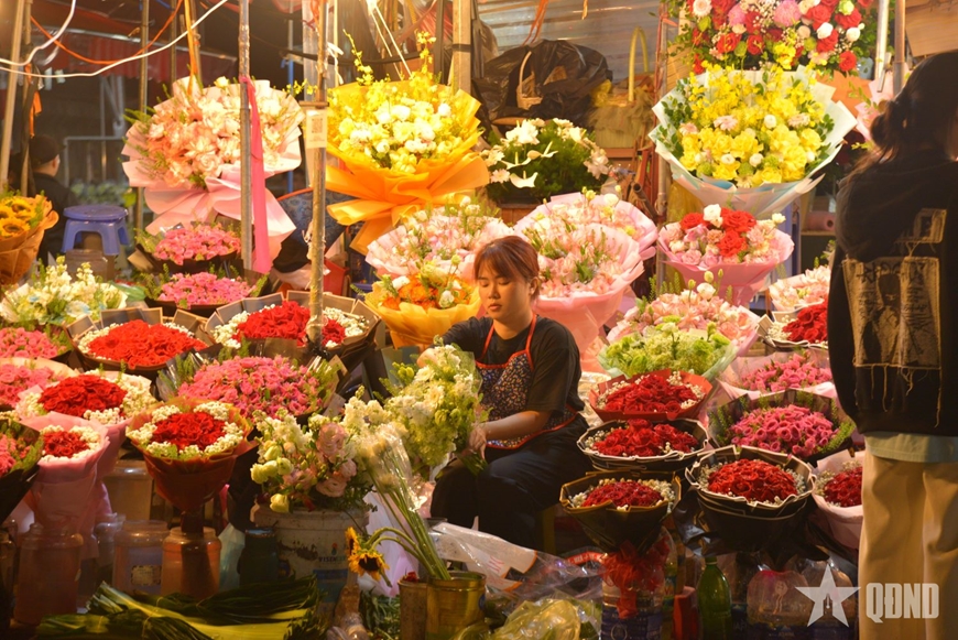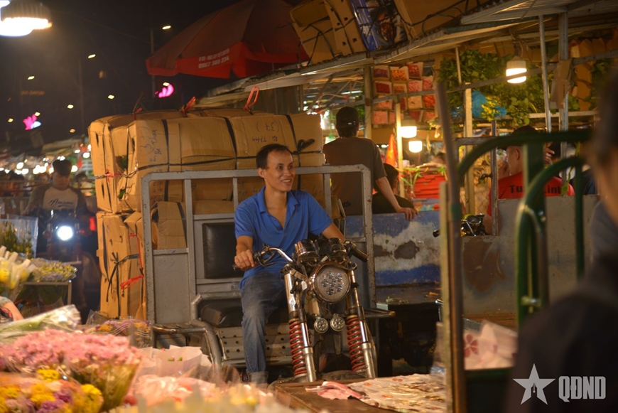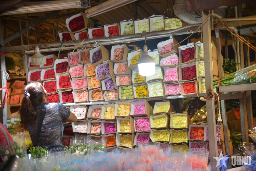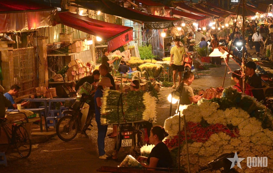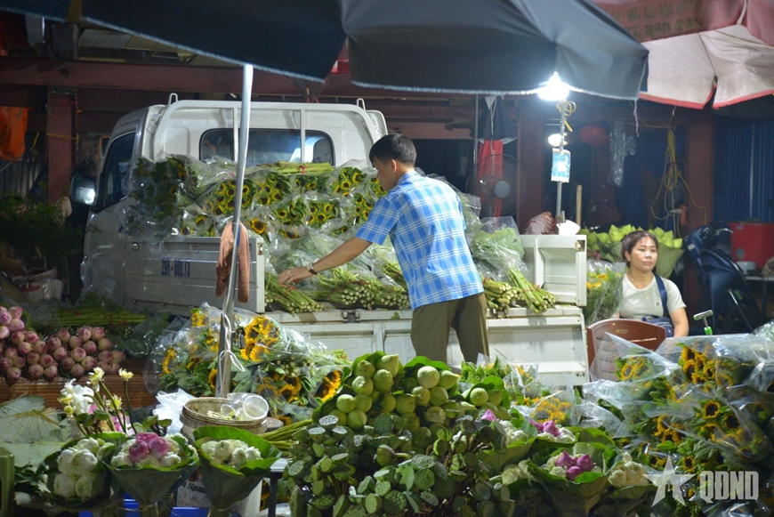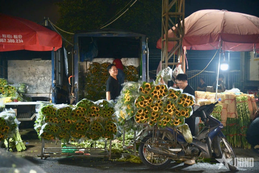 | Hoa từ khắp nơi như Tây Tựu, Mê Linh, Đông Anh, Đà Lạt,... được đưa về chợ từ sớm cho kịp giờ cao điểm tại chợ (2 giờ - 4 giờ sáng). |