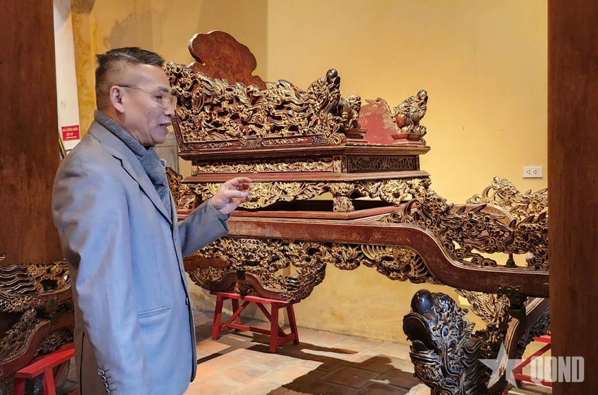 và hoa lá. Đây là hiện vật quý hiếm, mang đậm phong cách nghệ thuật thời Lê Trung Hưng, dùng để rước ngai thần chủ Long Đỗ - Bạch Mã trong các lễ hội truyền thống.