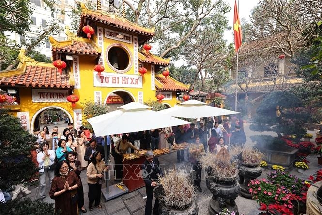 Ngày 17-2 (Mồng 1 Tết Bính Ngọ), người dân thủ đô Hà Nội nô nức đến các đình, chùa để cầu mong hạnh phúc, bình an đến với gia đình trong dịp năm mới. Đi lễ đình, đền, chùa đầu năm là truyền thống văn hóa lâu đời của người Việt Nam nói chung và người Hà Nội nói riêng qua bao thế hệ.
