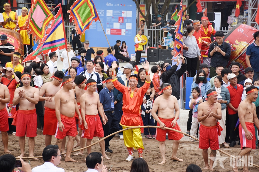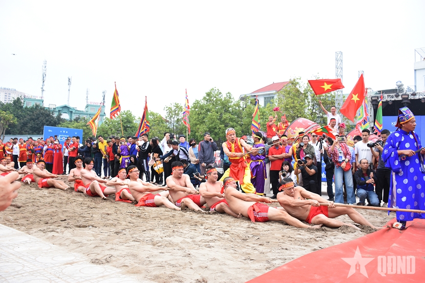 | Kéo song Hương Canh được tổ chức vào tháng Giêng hằng năm, có nguồn gốc từ chiến thuật thủy chiến thời Ngô Quyền. Ảnh: HOA LƯ |