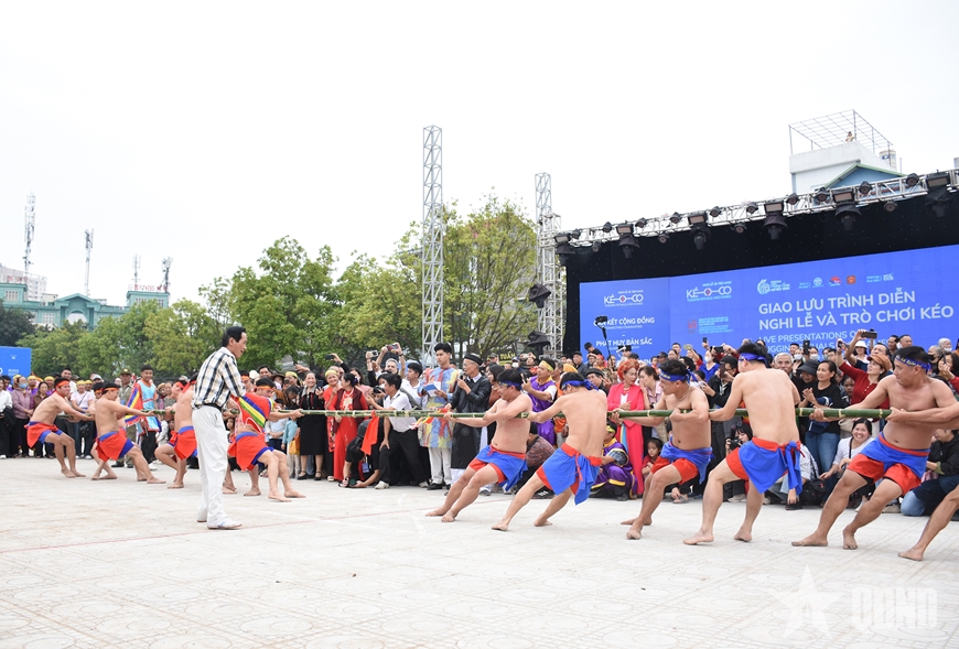 Phát biểu khai mạc, đồng chí Nguyễn Mạnh Hà, Bí thư Đảng ủy, Chủ tịch HĐND phường Long Biên (TP Hà Nội) nhấn mạnh: “Ở Việt Nam, kéo co không chỉ là trò chơi dân gian, mà còn là nghi lễ tín ngưỡng thiêng liêng, gắn với những vị thần tượng trưng cho sức mạnh, lòng nhân ái và sự che chở của thiên nhiên. Mỗi mùa lễ hội, tiếng hô “kéo co” là âm thanh của niềm vui, là tiếng vọng của ước vọng trị thủy, chống lũ, cầu cho quốc thái dân an, mưa thuận gió hòa, mùa màng bội thu. Chương trình “Giao lưu, trình diễn di sản văn hóa phi vật thể đại diện của nhân loại - nghi lễ và trò chơi kéo co” vừa là hoạt động trình diễn di sản, vừa là diễn đàn văn hóa mở giữa các vùng miền trong nước và thúc đẩy kết nối văn hóa quốc tế”.