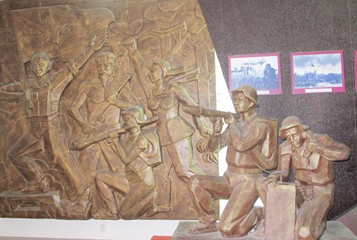 | Bức phù điêu khắc họa tinh thần chiến đấu của quân và dân Khu 9 tại Nhà trưng bày Chiến thắng Chương Thiện, TP Vị Giang. |