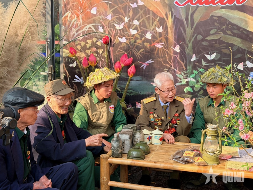 | Các cựu chiến binh, chiến sĩ Điện Biên giao lưu với thế hệ trẻ và du khách. |