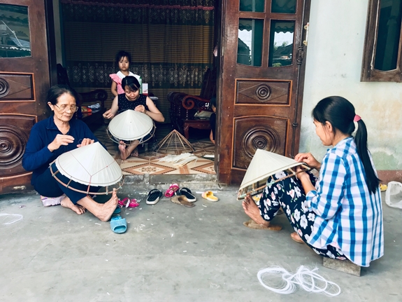 Những thời điểm nông nhàn là bà con dành thời gian cho việc khâu nón. Ba mẹ tôi cũng nên duyên vợ chồng nhờ những chiếc nón lá. Trẻ em tụi tôi sau giờ tan học ở trường, cũng ngồi bên khuôn nón, tay thoăn thoắt khâu nón mà miệng vẫn nói cười vui vẻ… Cái nghề này ngoài lợi ích về kinh tế là tạo việc làm, tăng thêm thu nhập cho người dân thì còn gắn kết mọi người sống gần gũi, chan hòa, yêu thương nhau hơn.