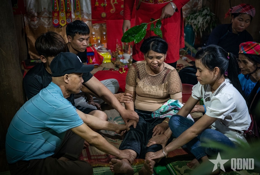 Lễ buộc chỉ cổ tay cầu bình an cho người làm khoăn.