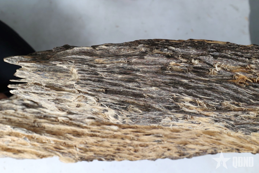 | Nạo lớp gỗ mỏng màu vàng bên ngoài để thấy được lõi trầm màu đen bên trong. |