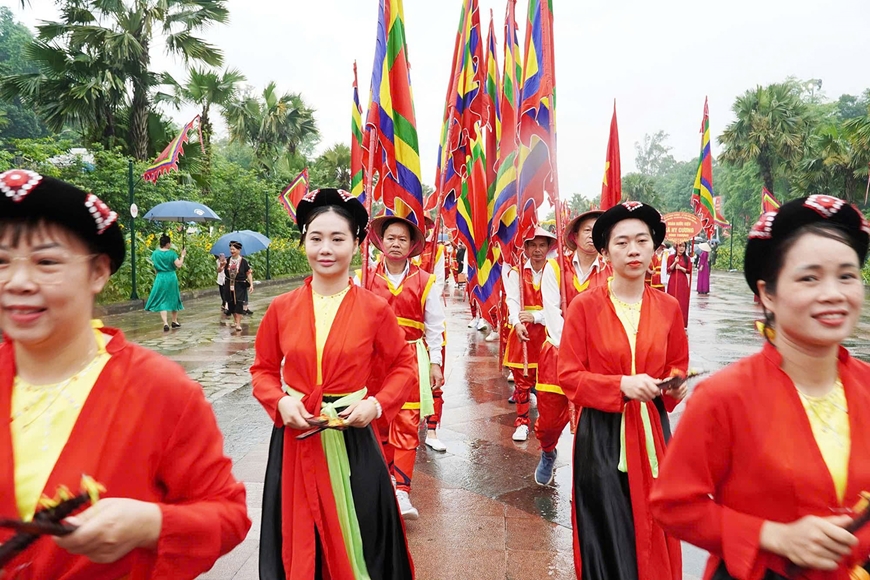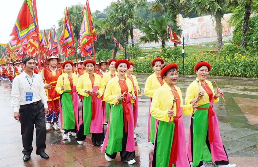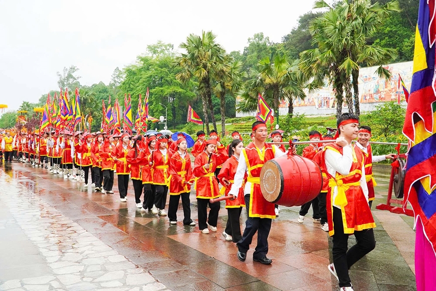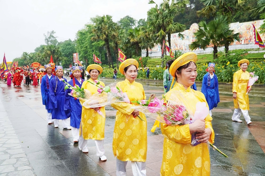Trong các nghi lễ ấy, rước kiệu về Đền Hùng dâng cúng lễ vật lên Tổ tiên là một nét đẹp văn hóa truyền thống, mang tính cộng đồng sâu sắc, thể hiện đạo lý “Uống nước nhớ nguồn”, sự tôn kính tổ tiên.
