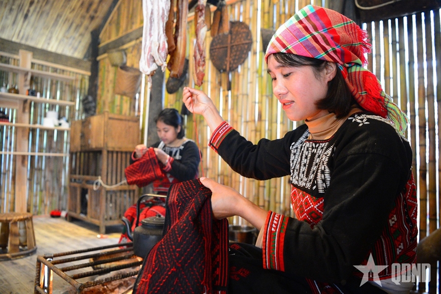 Trong những căn nhà tre giản dị, hình ảnh các phụ nữ trẻ ngồi bên bếp lửa, chăm chú thêu từng đường chỉ đã trở thành điều quen thuộc. Việc truyền dạy nghề diễn ra tự nhiên trong đời sống hằng ngày, người lớn hướng dẫn người trẻ, chị dạy em, cứ thế nối dài qua nhiều thế hệ. Họ không chỉ làm ra trang phục, mà đang giữ gìn ký ức cộng đồng, gìn giữ bản sắc của dân tộc mình.