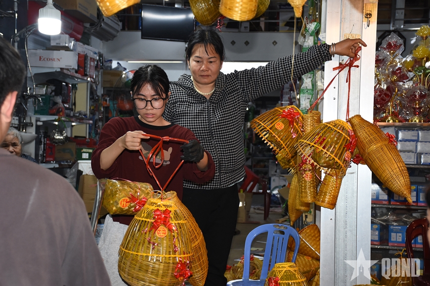 | Thiếu nữ mời chào du khách mua đơm, đó, giỏ... |