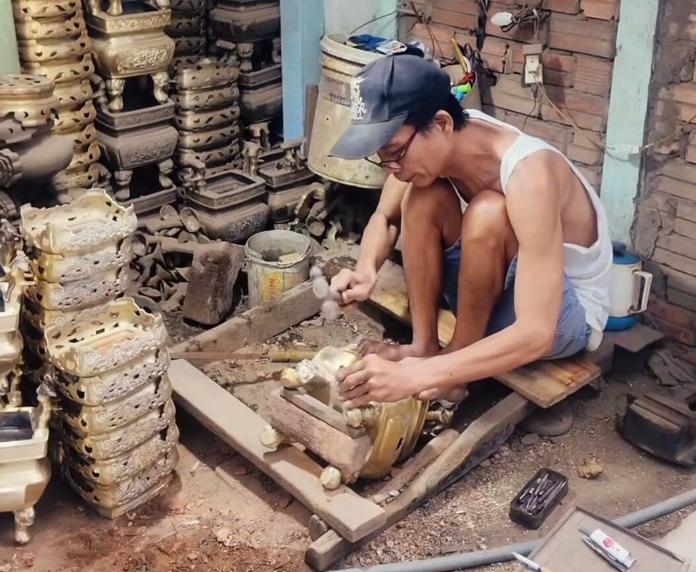Từ khâu làm đất, tạo khuôn, đúc đồng cho đến gia công, chạm khắc hoa văn, tất cả đều được thực hiện thủ công. Mỗi người thợ chỉ đảm nhiệm một công đoạn nhất định, nhưng bàn tay con người chính là yếu tố quyết định “thần thái” của một bộ đồ thờ. Nhờ đó, các sản phẩm lư đồng An Hội vẫn giữ được dấu ấn riêng hiếm thấy, giữa thị trường lư đồng công nghiệp ở TP Hồ Chí Minh.