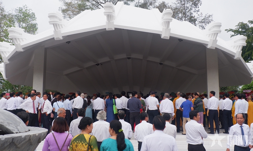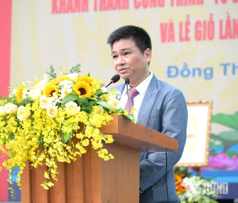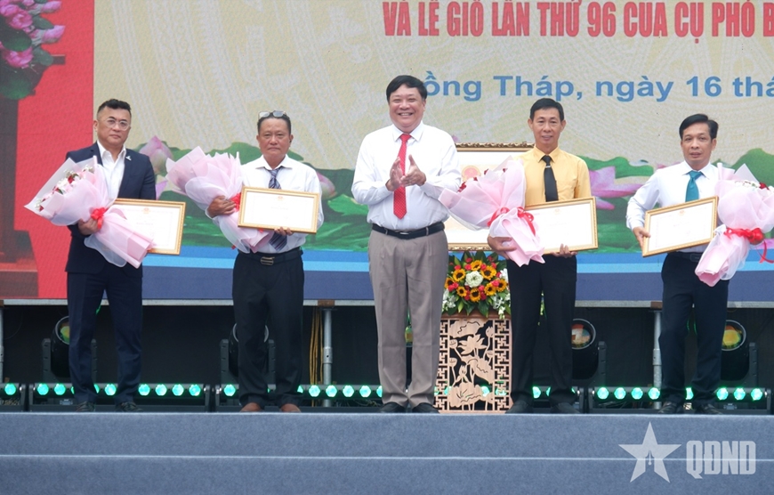 | Lãnh đạo tỉnh Đồng Tháp khen thưởng các đơn vị tài trợ công trình tu bổ, tôn tạo khu di tích. |