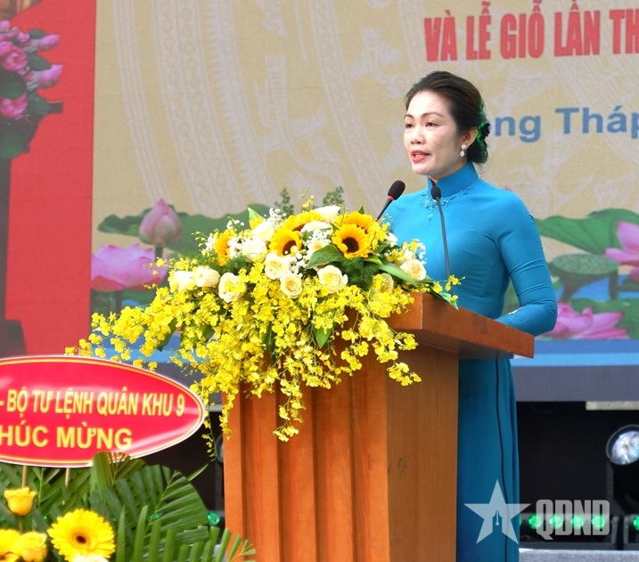 | Đồng chí Nguyễn Thị Uyên Trang, Giám đốc Sở Văn hóa, Thể thao và Du lịch tỉnh Đồng Tháp phát biểu tại buổi lễ. |