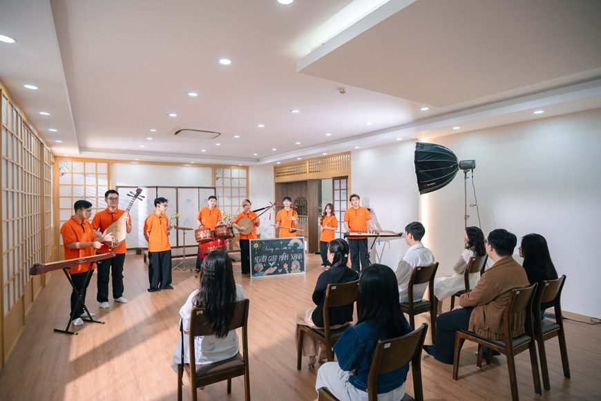 Các bạn trẻ Trường Đại học FPT biểu diễn ở khung cảnh đậm chất Việt Nam. Ảnh: Nhân vật cung cấp