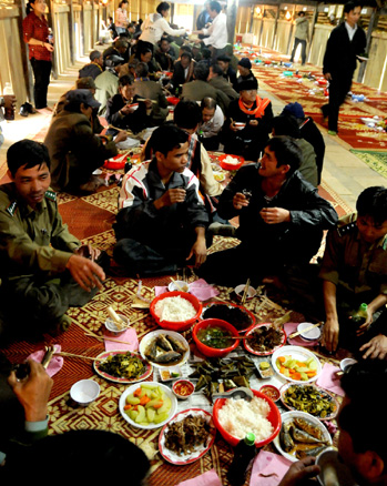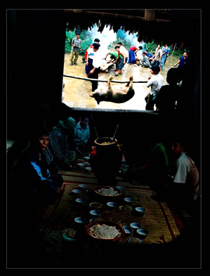 | Bữa cơm rượu đông vui cả làng, cả khách |