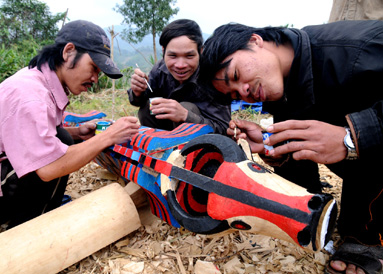 | Các nghệ nhân dân gian đang trang điểm tượng nhà mồ |