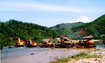 | Xe máy công trình qua sông |