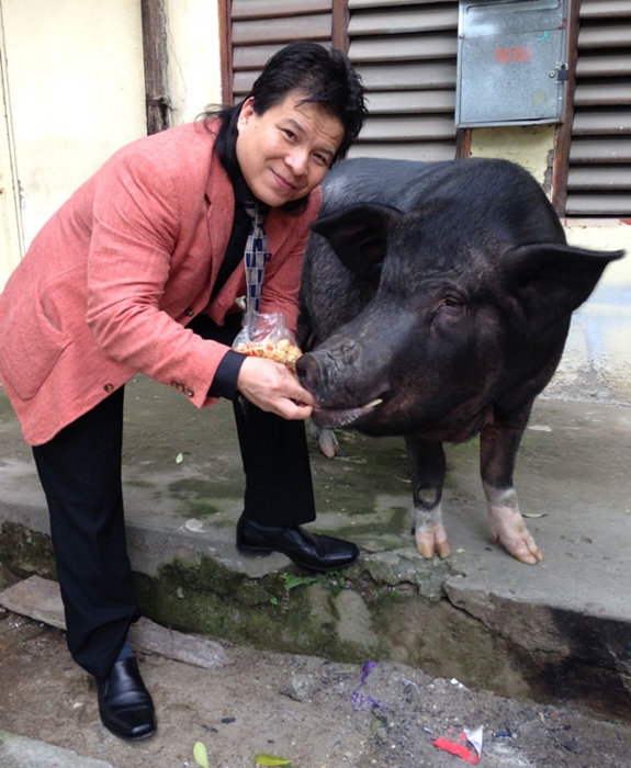 Năm 2012, khi biết tôi có ý định nuôi lợn để làm xiếc nên bạn tôi đã tặng 1 con lợn nặng 6 kg. Tôi mang về chăm sóc và đặt tên là “Quýt”. Tôi coi “Quýt” như một người bạn, đi đâu cũng mang theo, tôi lên xe ô thì "Quýt" chủ động tự nhảy lên được. Thực sự tôi cũng bất ngờ bởi tôi cũng không nghĩ với vật nuôi để phục vụ con người làm thực phẩm là chính mà khi được thuần hóa lại nhanh nhẹn đến thế. Trong quá trình tiếp xúc, tôi thấy các con vật nuôi đều có thể thuần hóa được. Tình yêu của con người sẽ tạo cho con vật phát huy những bản năng sẵn có, khi con người giao tiếp với nó thì những bản năng đó sẽ thành phản xạ có điều kiện, con vật đều cảm nhận được tình cảm mà chủ nhân dành cho nó.