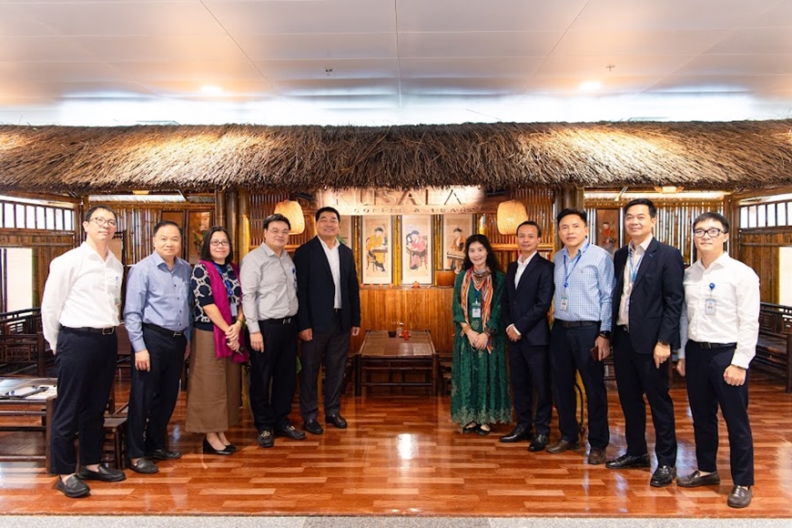 Lãnh đạo Tổng công ty Cảng hàng không Việt Nam (ACV) và Cảng hàng không quốc tế Nội Bài tại không gian triển lãm. Ảnh: NIA